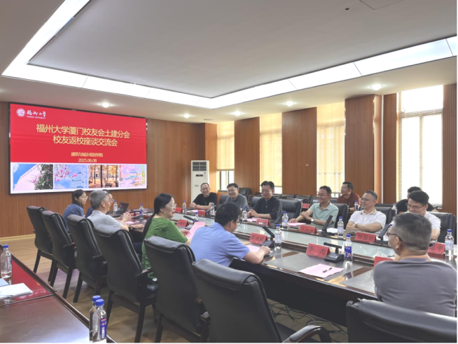 当日下午,校友们赴土木工程学院6楼会议室,与学院领导以及福州大学校友会土建分会福州校友代表饶舜、姚义标等座谈交流。土木工程学院党委书记吴唐风、副院长黄明、校友工作顾问陈德铭、校危机事件应对工作室主任顾训明出席会议。