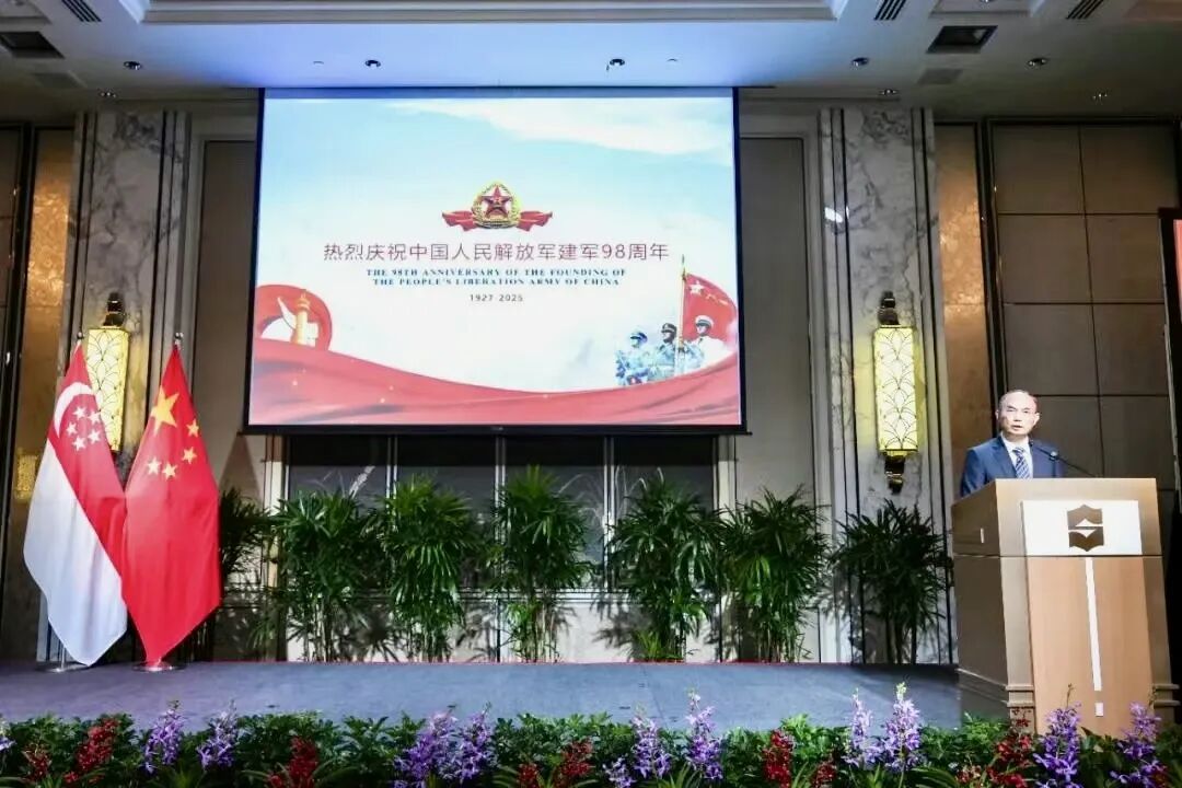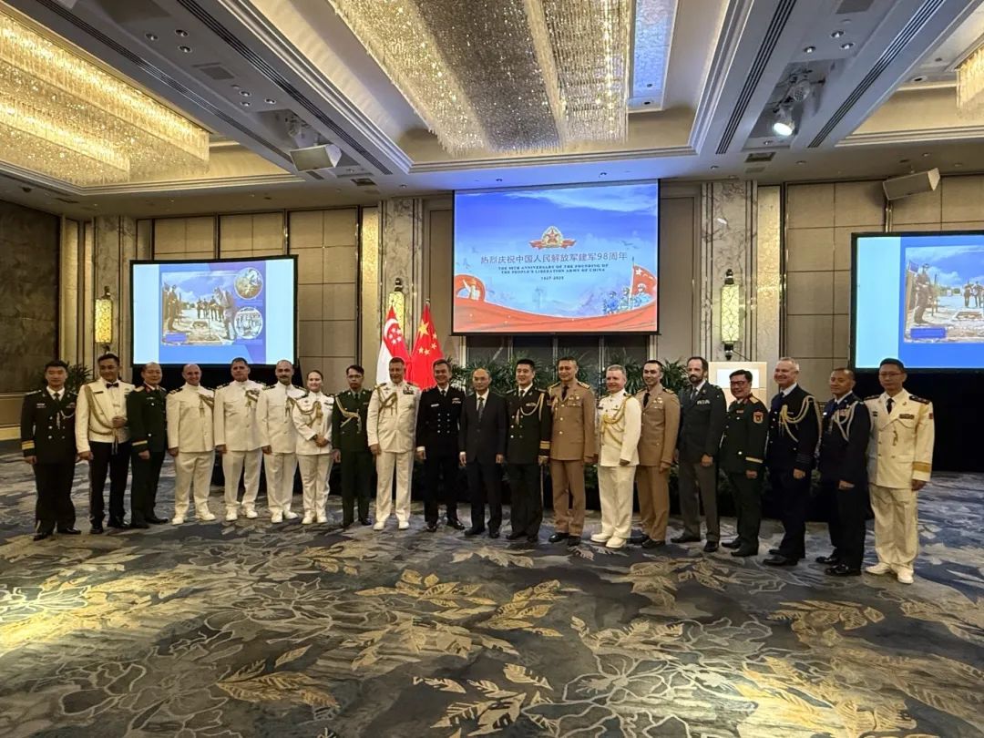 7月30日,中国驻新加坡大使馆隆重举行庆祝中国人民解放军建军98周年招待会。曹忠明大使、刘晓光国防武官,新武装部队总长孟耀诚中将,新军方等各界友人,多国驻新武官共200余人出席。