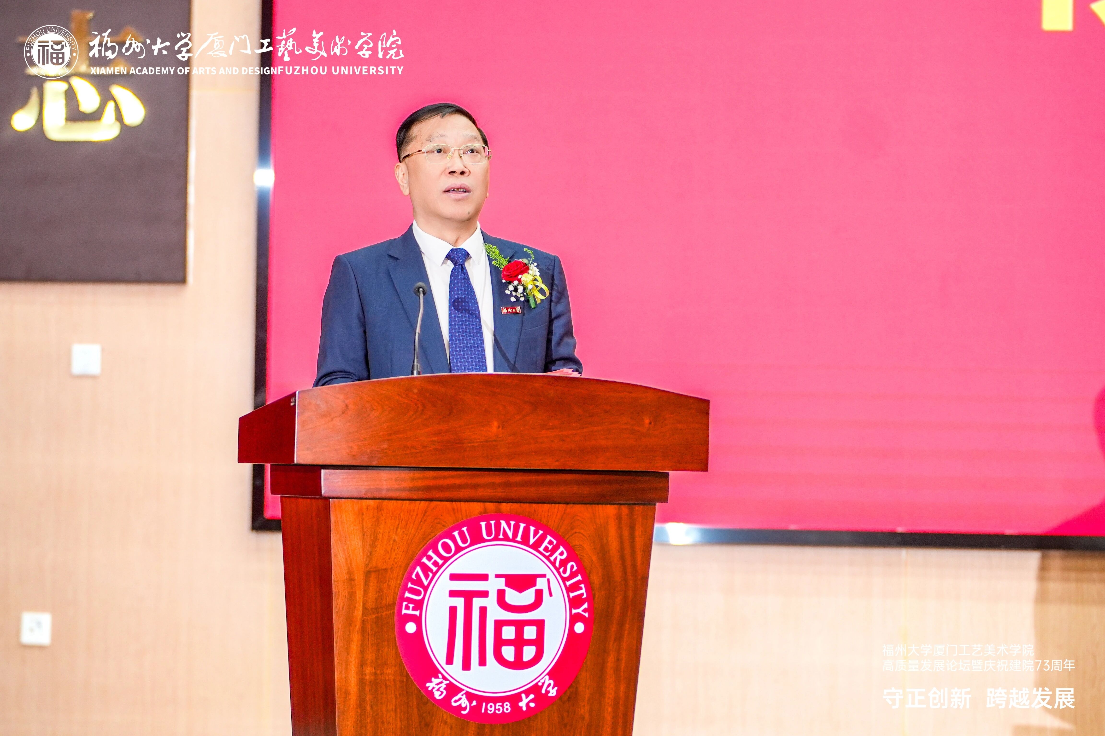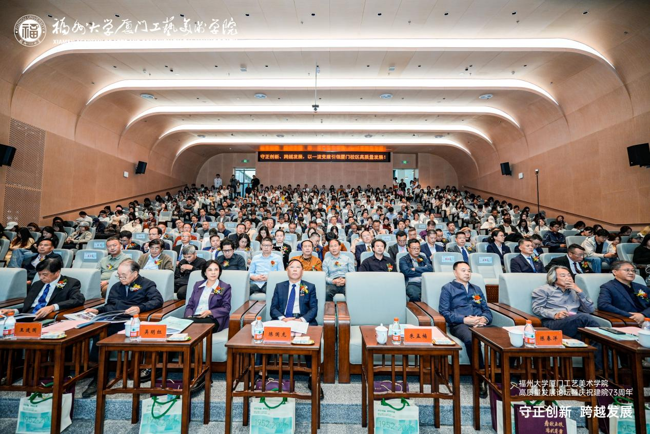 11月18日,福州大学厦门工艺美术学院举办“守正创新 跨越发展”高质量发展研讨会暨建院73周年系列活动。中国工程院院士、东南大学教授王建国,国际欧亚科学院院士、福建省人民政府顾问赵新力,厦门理工学院校长陈小辉,闽都陈嘉庚公益基金会秘书长朱孟楠教授,华侨大学副校长许志勇,厦门市文联副主席陈春洋,清华大学美术学院原院长马赛教授,国家社科基金艺术学重大项目首席专家、苏州大学博物馆馆长李超德教授,厦门市文化和旅游局原二级巡视员、福州大学中国漆画艺术研究院名誉院长叶细致以及福州大学党委书记陈国龙,中国工程院院士、福州大学校长吴明红,校党委常委、副校长、厦门校区管委会主任王心晨出席有关活动。