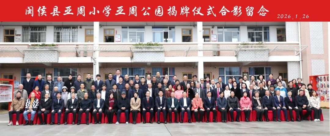 为缅怀我校1970级化学化工系校友、爱国侨领、四十一位“华侨小英雄”代表余亚周先生,传承与弘扬其在海外反华排华逆流中勇于发声、维护民族尊严的精神,闽侯县亚周小学于2026年1月26日隆重举行亚周公园揭牌仪式。