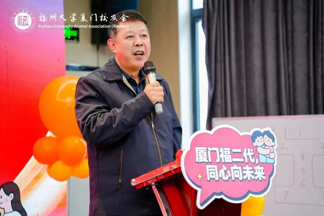 随后,福州大学厦门校友会会长林泽权先生登台讲话。他强调,“福二代成长俱乐部”不仅是校友会系列活动的重要延伸,更是深化校友家庭情感纽带、凝聚校友力量的核心载体。他呼吁全体校友携手搭建坚实的支持体系,共同关注“福二代”的成长轨迹与未来发展,以福州大学作为起点迈向更辉煌的未来!同时,林会长特别寄语现场的孩子们,期待他们在俱乐部丰富多彩的文体活动与研学实践中,拓宽视野、强健体魄、锤炼心智、结交挚友,让成长之路始终充盈着欢声笑语与温暖陪伴。